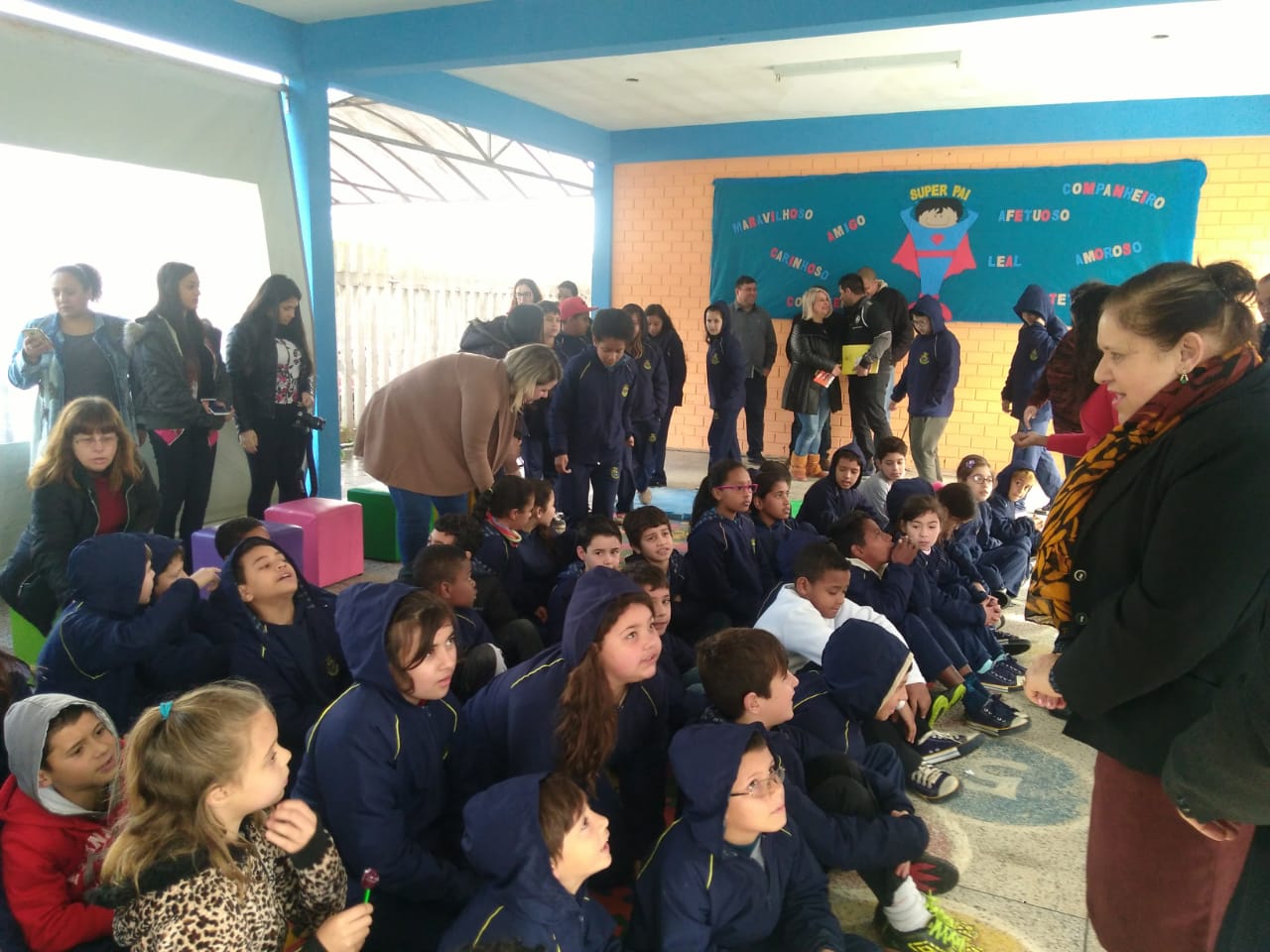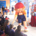 Os alunos receberam entusiasmados durante o lançamento do projeto o mascote “Bookinho” e participaram de uma contação de histórias.